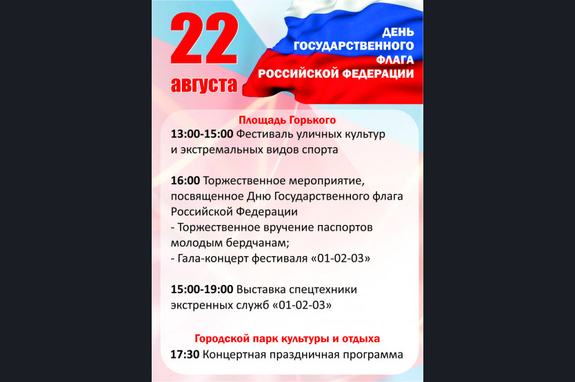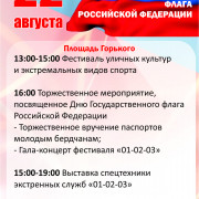 16:00 - торжественное мероприятие, посвященное Дню Государственного флага Российской Федерации: