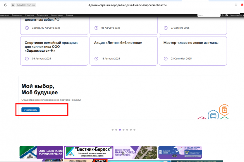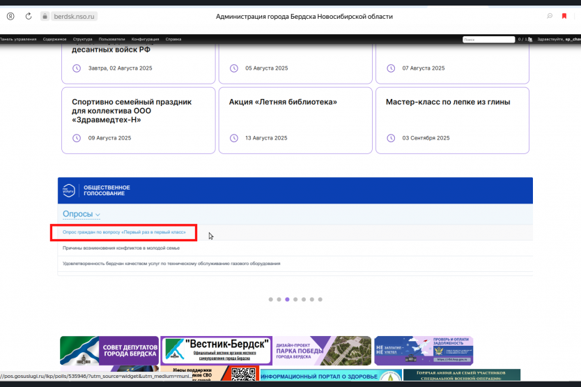 Интернет-опрос доступен на официальном сайте администрации города Бердска по адресу: http://berdsk.nso.ru (информация в фото), также по ссылке: https://pos.gosuslugi.ru/lkp/polls/535946/?utm_source=widget&utm_medium=municipality&utm_campaign=berdsk.nso.ru&utm_content=50708000 .