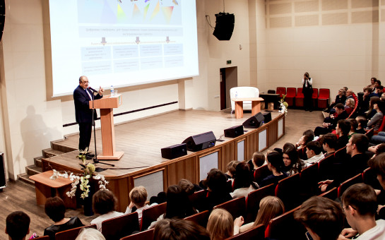 В своей лекции Николай Алексеевич Тестоедов просто и понятно рассказал о сложных космических процессах: почему спутник не падает на Землю, как работают космические аппараты связи и как меняются зоны обслуживания их антенн. После выступления у ребят была возможность лично задать вопросы ученому.